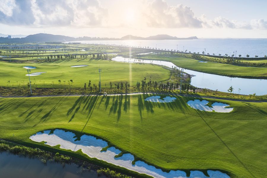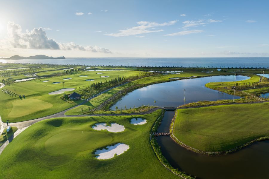• **View biển:** Nhiều hố gôn (như hố 6, 7, 8, 12, 13, 14) nằm song song hoặc vuông góc trực tiếp với mặt biển, mang lại tầm nhìn Panorama 360 độ độc nhất.