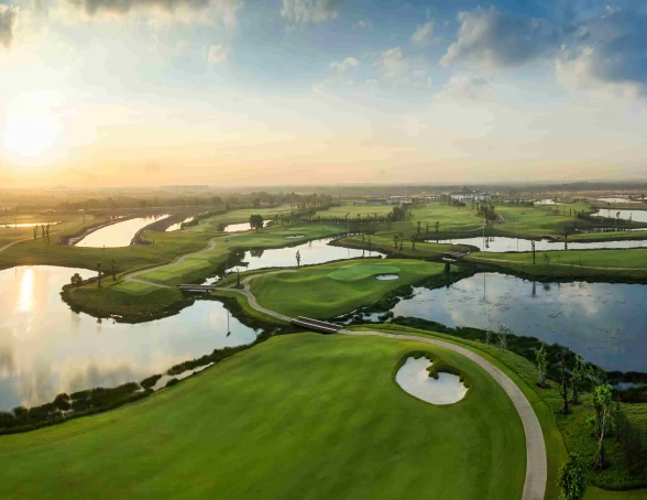 • Quy mô & đẳng cấp châu Á: Trải rộng 200 ha với 36 hố tiêu chuẩn quốc tế, chiều dài gần 7.700 yards – nằm trong top sân golf dài nhất châu Á.
